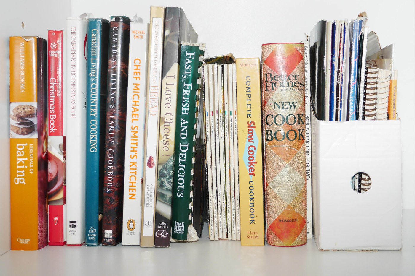 The most time-consuming project, though, was eliminating all of our printed recipes and cookbooks. I had discarded lesser-used cookbooks and past issues of Canadian Living magazines with each move, but we still had a shelf full of cookbooks, an index card box with old family recipes, and an over-stuffed expanding file pouch filled with newspaper and magazine clippings of past successes and future culinary delights.