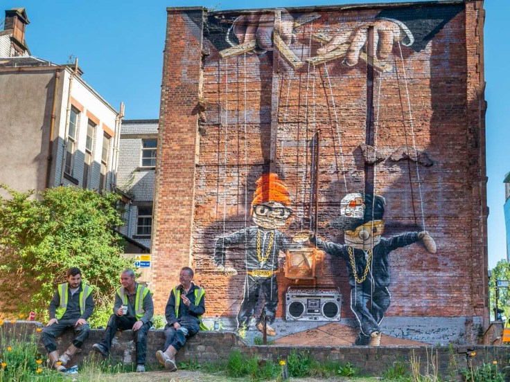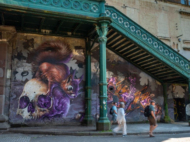 We didn’t make too many plans for the day. I had at the ready a map of Glasgow’s City Center Mural Trail but, unlike our friends (Retired Roamers), we didn’t put in the effort so only caught a few examples of this city-wide art exhibition.