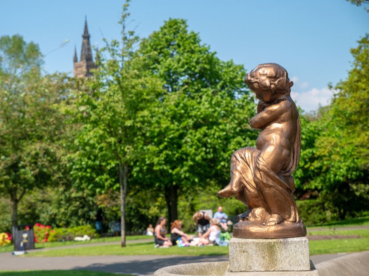 From the café we wandered through the beautiful Kelvingrove Park, across the River Kelvin, eventually arriving at the River Clyde. We wandered along the banks of the Clyde back to town.