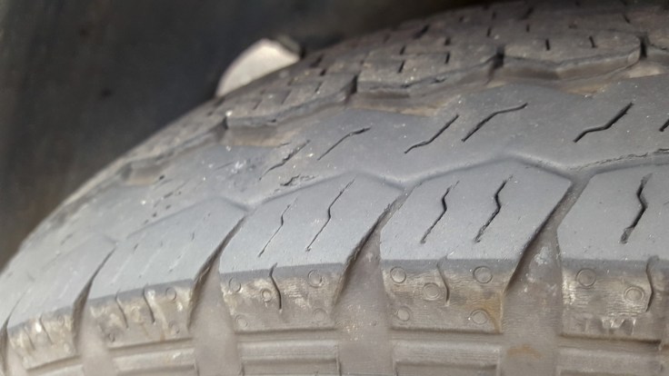 At this point we were in small-town northeastern California on a Friday afternoon trying to find someone who could give us their opinion and provide us with a new tire. At the first place we stopped we received an opinion—that we’d need to replace the tire as soon as possible as, not only was it wearing, but it was coming apart in some areas—but no tire as that shop couldn’t handle a vehicle Artie’s size.