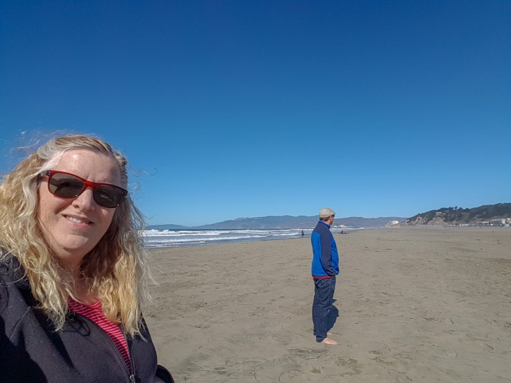 On Tuesday, we drove the 2 hours from our campsite north of Santa Rosa (where we’d positioned ourselves to be nearby) to the seaside parking lot. This was by far the best service waiting area we have experienced. Dan showed up in his own RoadTrek and while he worked his magic, Ken and I walked along the seaside and into Golden Gate Park.