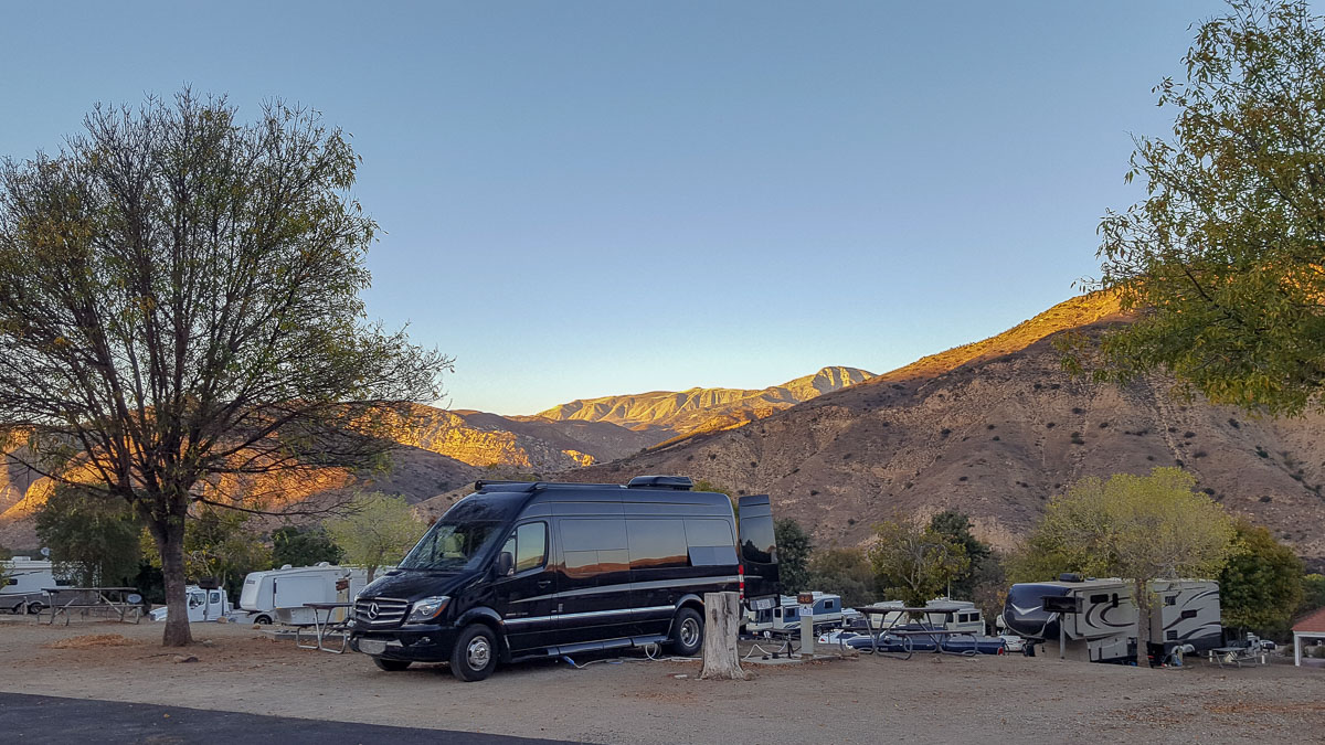 Though we’re not fans of parking-lot-style campgrounds, and our small vehicle doesn’t require them, we did appreciate the view from our spot up on the hill.