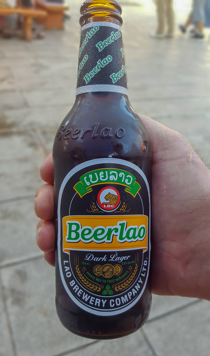 We found a shady spot to wait out our time in Laos, but then Ken succumbed to the purchasing frenzy and bought himself a beer.