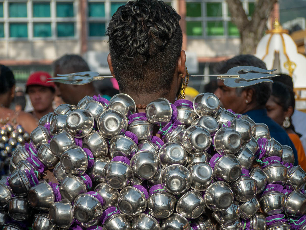 The second day of the festival is all about Kavadi Attam or the Burden Dance. Though burdens can be as simple as a tin of milk, many participate in body piercing, which comes at the end of many days of prayer and fasting.