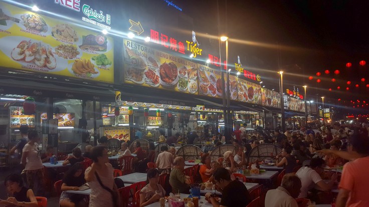 The surprises continued when, while searching for a place for dinner, we happened upon a frenetic street of food (the Alor Street Food Night Market) where quiet or closed restaurants by day fill the streetscape at night with tables and chairs, many of which were full when we strolled along. The center of the street is an undulating mass of people checking out the signs, buying from the kiosks that squeeze in between the dining areas, or just moving through to the high-end malls and shops at the other end of the food street.