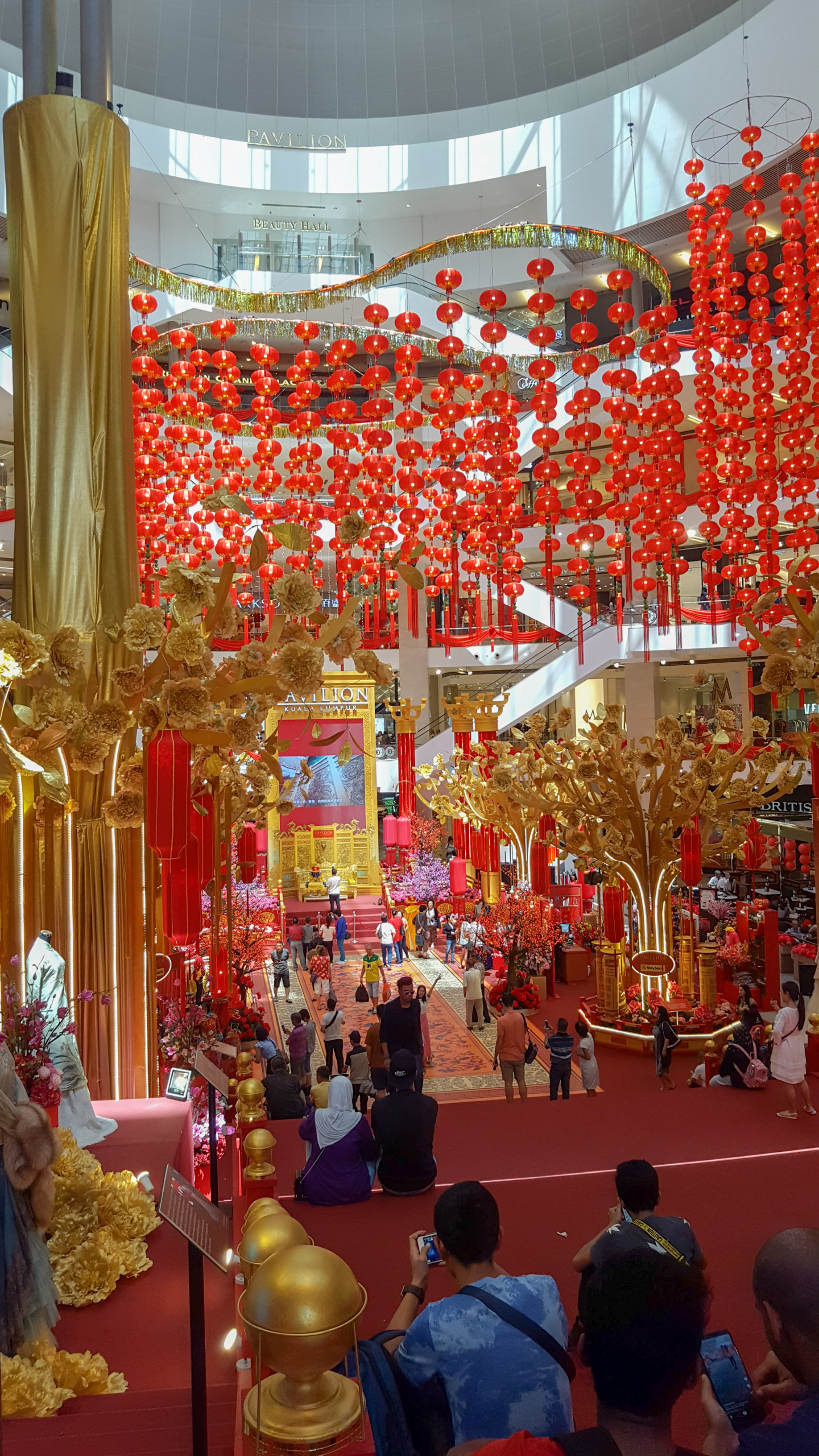Though the Chinese New Year decorations in Penang were bright and colourful, and sometimes a little over the top, the decorations at the malls here were ostentatious, both inside and out.