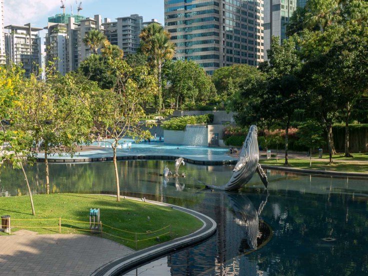 We can’t forget the ubiquitous Petronas Twin Towers. We were surprised by the green space on one side of them. It offered a massive playground, a waterpark, and plenty of shade, and joined up with a dancing water fountain.