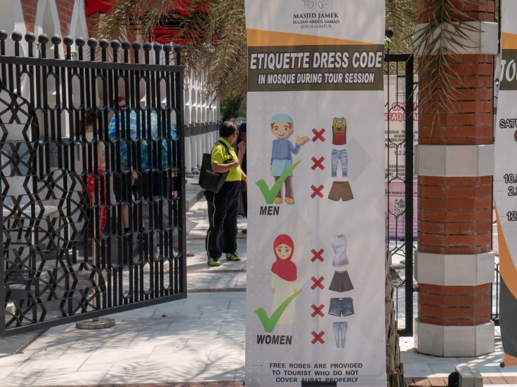 A not-as-pleasant surprise was our walk through Kampung Baru, a neighbourhood we had read about as a must-check-out. We found a walking tour map and followed it. Though occasional sewer smells are normal as you walk along the streets in other parts of the city and country, the smells in this neighbourhood were unceasing. Some restaurants and food stands had tried to reduce them by blocking the grates that were embedded in the sidewalks with various mats, but with so many openings it seems an impossible task to create a pleasant olfactory environment.
