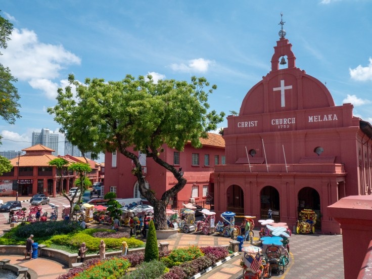 Right in the middle of Dutch Square, around which several historic red buildings are positioned, is an Instagram-ready I ♥ Malacca sign, making it difficult to incorporate the gardens in building photos. Bicycle taxis are often parked around the square as well. Nearby and in other areas we observed several Visit Malacca 2019 structures, also clearly designed for photos.