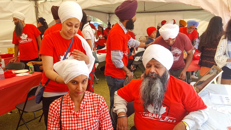 While Alex and his parents (son Kyle and daughter-in-law Candice) headed off for a Canada Day weekend camping trip with Candice’s family, we settled in and joined the festivities in Calgary at Princes Island Park. One of the coolest events we came across was Turban, Eh?, a cross-country program where members of the Sikh community wrapped hundreds (or possibly thousands) of heads with red or white turbans, explaining the significance of this traditional garb. As we wandered the park and rode along the pathways, it was fantastic to see the variety of folks who engaged with the program and wore their Canadian red and white a little differently this year.