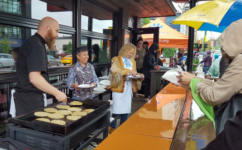 Ken and I also checked out some unusual and tasty treats at the much smaller and rainier (but very busy) 4th Street Pancake Showdown where several restaurants along 4th Street SW vied for the glory of a people’s choice win. Our favourites included Vin Room’s Chinese chive cake with hoisin syrup and five-spice creme fraiche, and Añejo’s Key Lime Flapjacks (buttermilk pancakes with lime cream cheese, shredded coconut, fresh mint, and maple syrup). Plain old pancakes will never taste the same!
