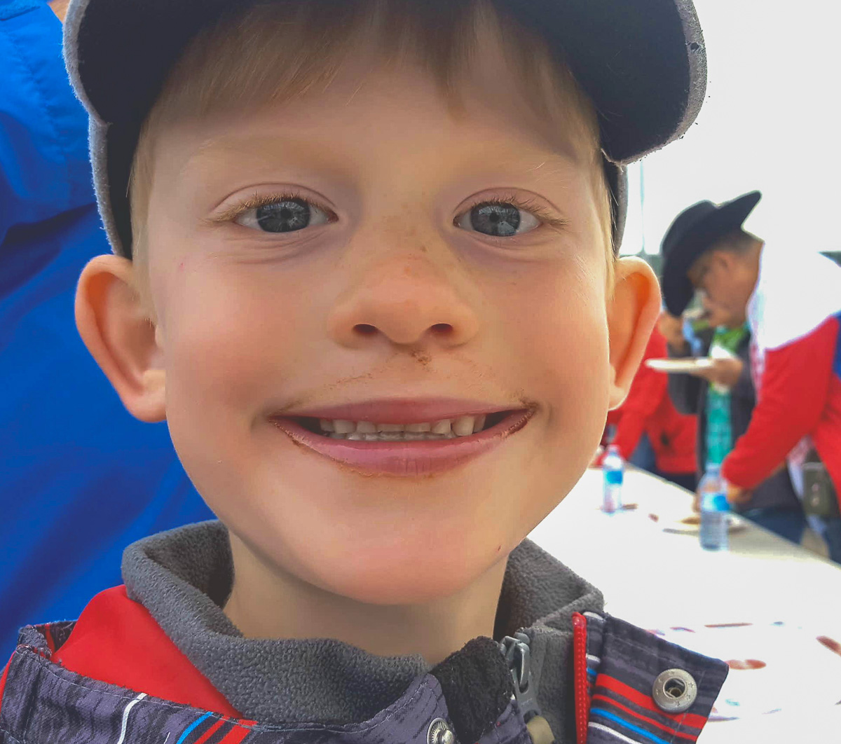 With Canada Day over, Calgary dives into stampede season, which also means pancake season. We took Alex to the giant Chinook Centre shopping mall event where they feed and entertain many tens of thousands of visitors.