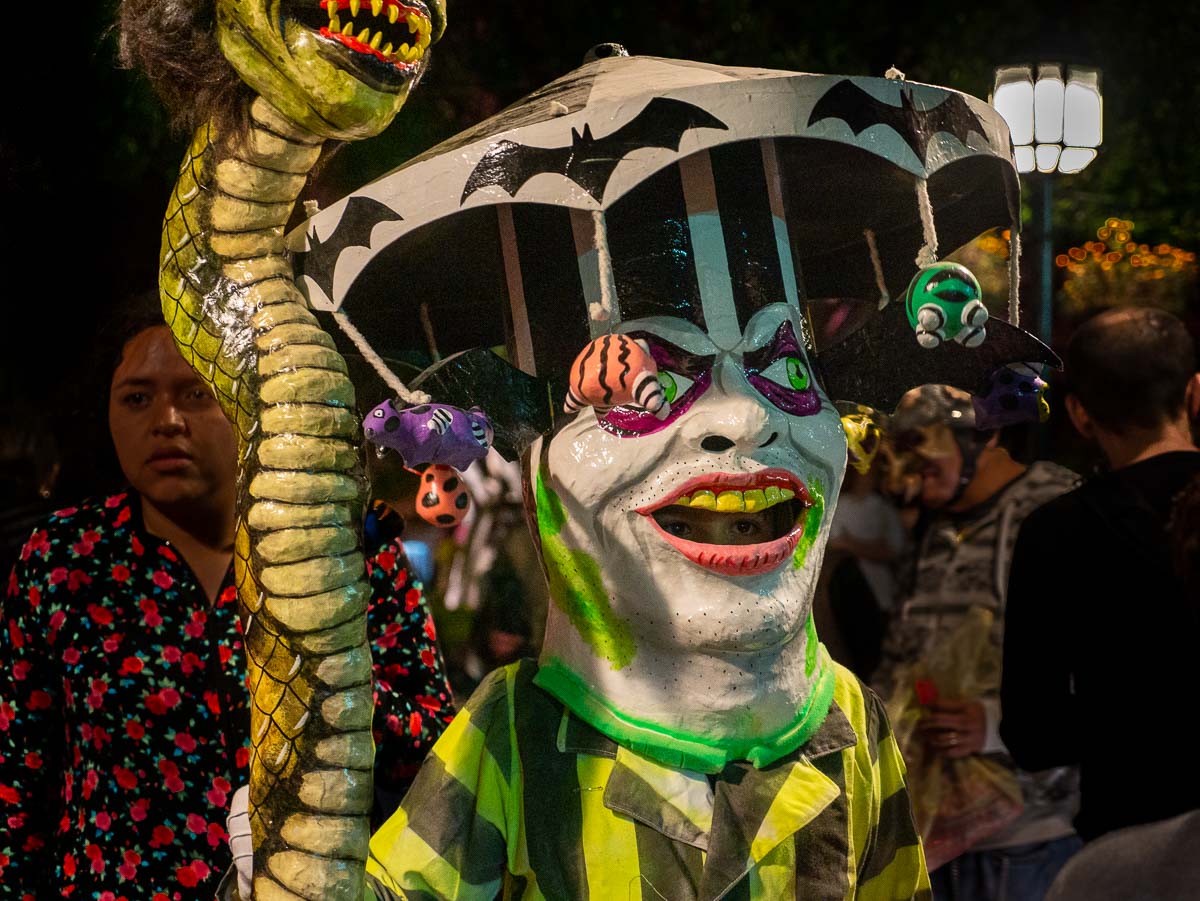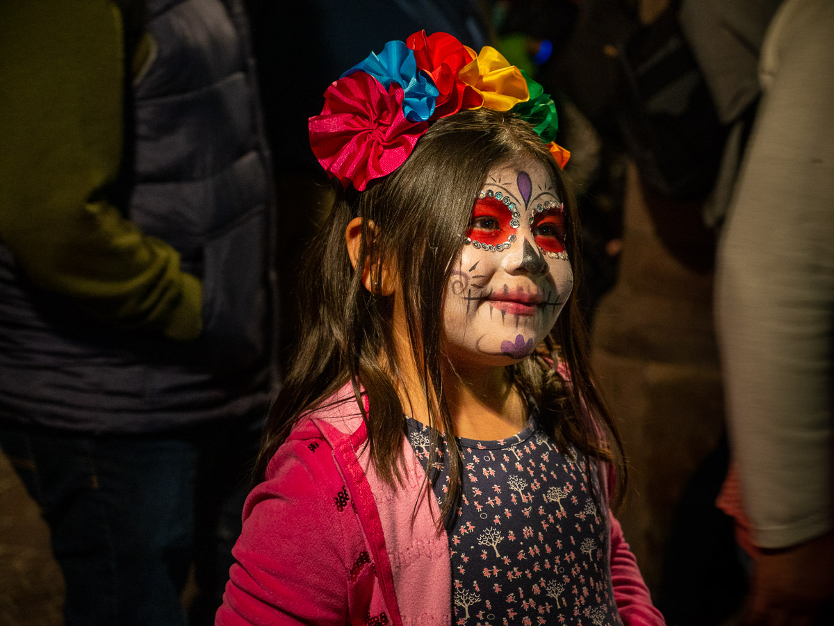 Since Halloween is the day before Día de Muertos (Day of the Dead), there were many little Catrinas and Catrins along with scary clowns and other crazy characters. Dressing up wasn’t restricted to the kiddos, either. Many adults were testing out their Día de Muertos makeup and costumes as well.