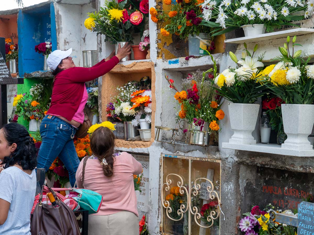 We met one gentleman who was quickly decorating the grave of his mother and nephew and then had to rush off to another cemetery to do the same for the grave of his wife. Though he lives in Texas now, every year he makes the trip to San Miguel to do this for his loved ones.