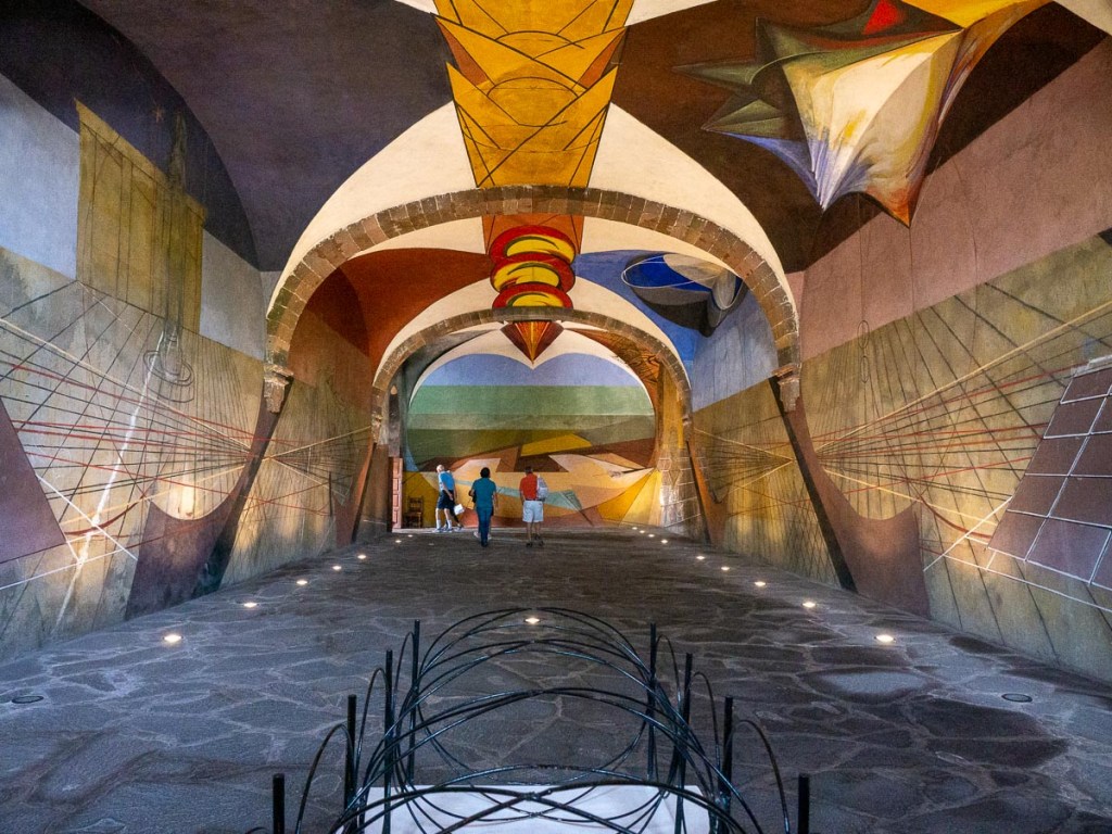 One room, which takes up most of one side of the quadrangle, is home to an incomplete mural. There are a few stories about why it’s incomplete. One is that the mural was being used by famous artists to teach perspective and other skills to students. A tiff broke out between or among some of the artist instructors and it was abandoned as a result. Though unfinished, the mural is protected and restored for all to appreciate.