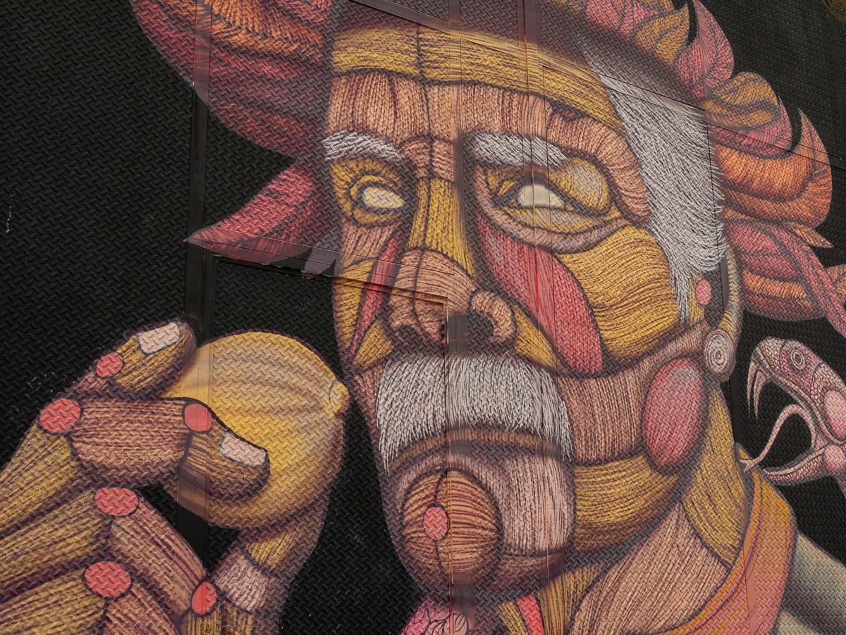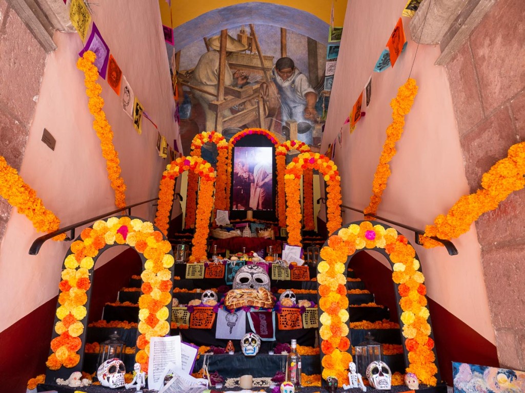 There are other murals on the walls of the building as well, though when we were there they were rendered inaccessible by Día de Los Muertos altars that were yet to be dismantled.