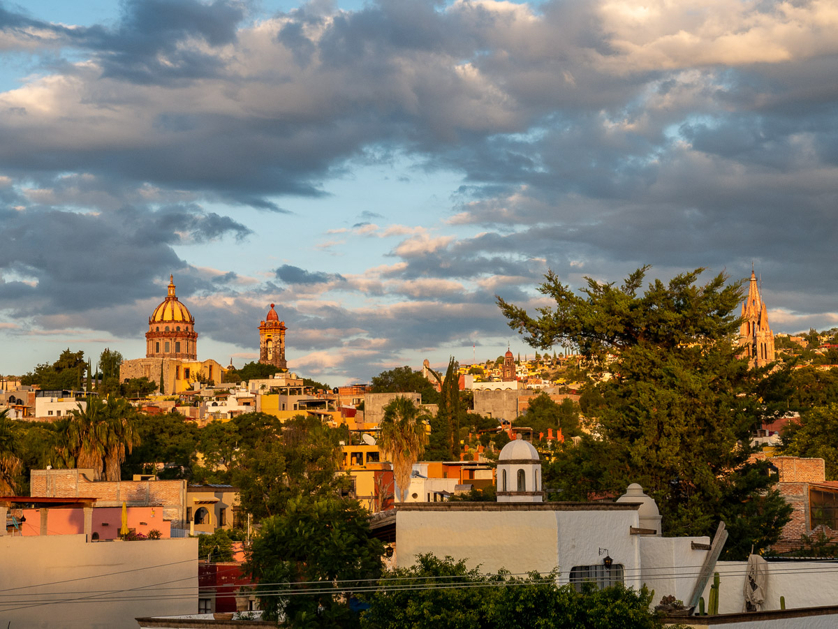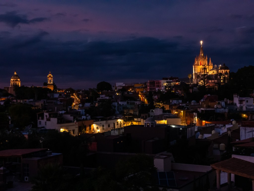 We spent a wonderful evening at Luna Tapas Bar, the beautiful Rosewood Hotel’s rooftop restaurant–something everyone we spoke to said we must do once. The restaurant affords almost 360-degree views of the city. We arrived at dusk and watched as the sun set and the city sparkled, with San Miguel’s iconic churches front and center.