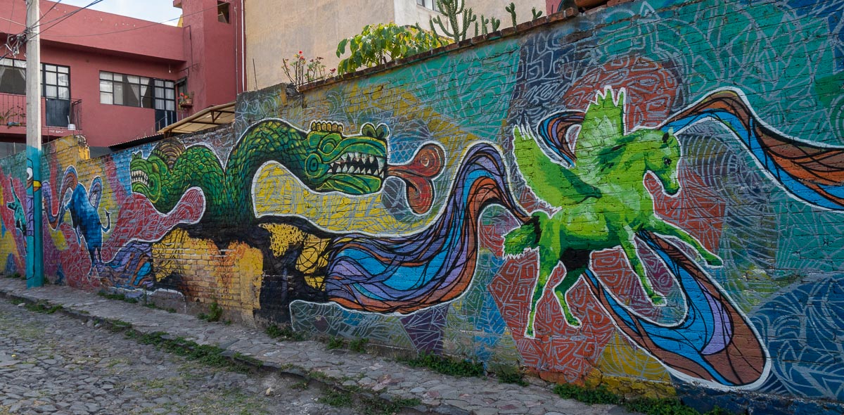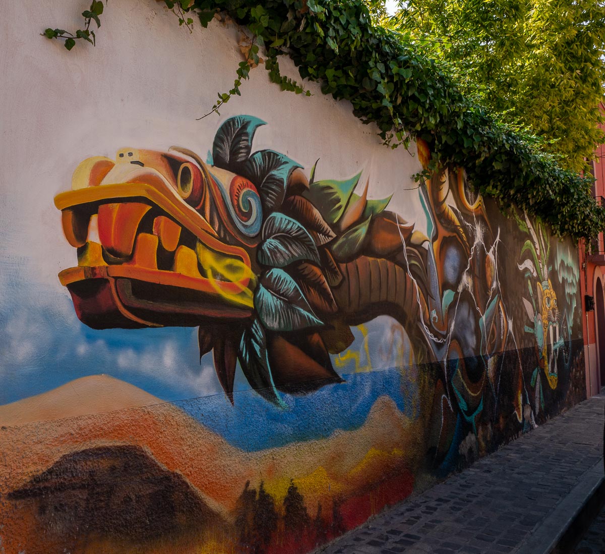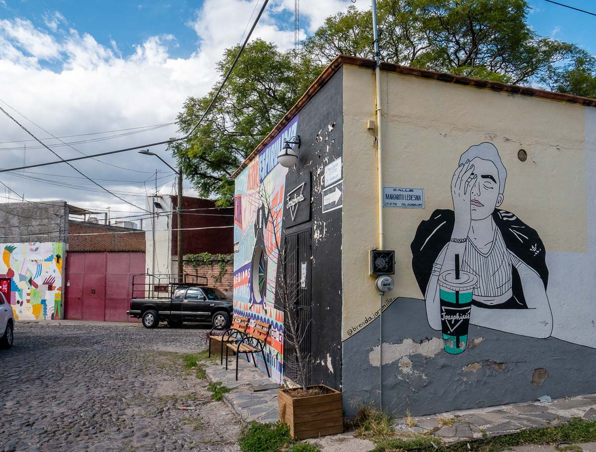 We read that there were murals to be seen in the Guadalupe colonia (neighbourhood). Though we searched for a map of the artwork, there didn’t seem to be one available. There is a walking tour if you want to be sure to see the highlights and understand the program behind them. We chose, instead, to walk into the area a couple of times and see what we could see on our own. There are so many murals, just strolling the streets of this typical Mexican neighbourhood resulted in many colourful and visually engaging images.