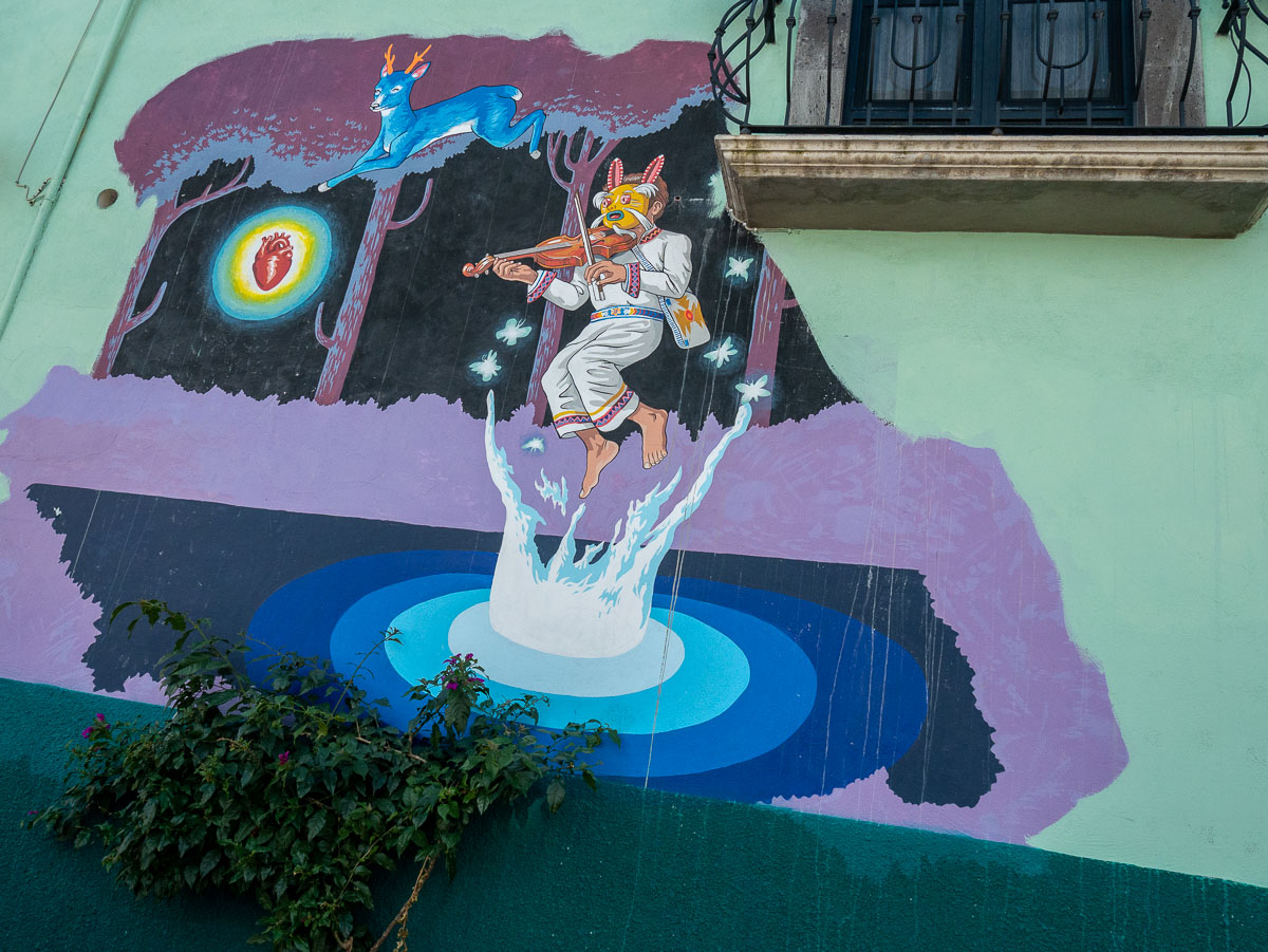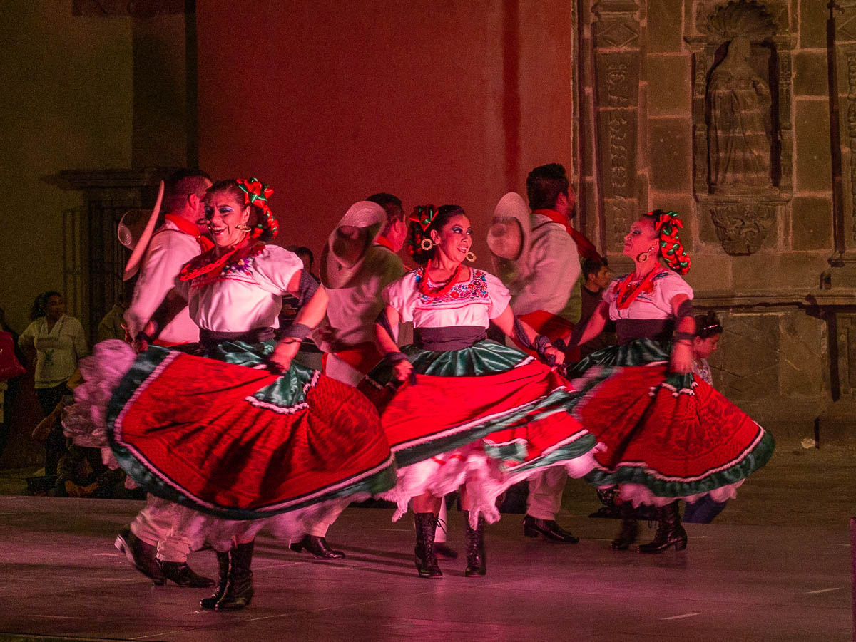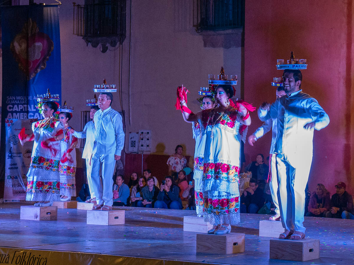 Walking around the city, we often ran into some form of entertainment like mariachi bands, mojigangas (giant puppets) leading wedding guests to a reception, and even the finish line of a half-marathon run. One evening we were entertained by a line-up of folk dances performed by a high-level dance troupe. The dance performances were colourful and thoroughly enjoyed by the mostly local crowds taking it in. We had some laughs when the final set included a dance that involved balancing a full beer bottle, and then trays of full glasses and a beer bottle, on each dancer’s head while they stomped and twirled around the stage or on top of little wooden boxes.