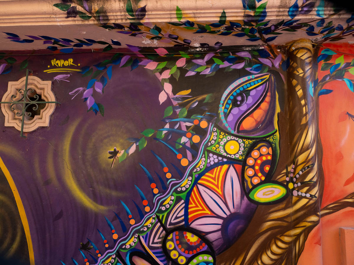 The mural program is called Muros en Blanco Street Art project. Though the website doesn’t offer very much information, fellow nomads and bloggers, Sue and Dave Pearse, (whereverarewe.com) took the tour and learned a lot about the program and its impact on the neighbourhood. Check out their blog post about the murals and tour here. The tour guide is the founder of the Muros en Blanco program. There are over 100 murals now, with more being added each year (we found only a fraction).