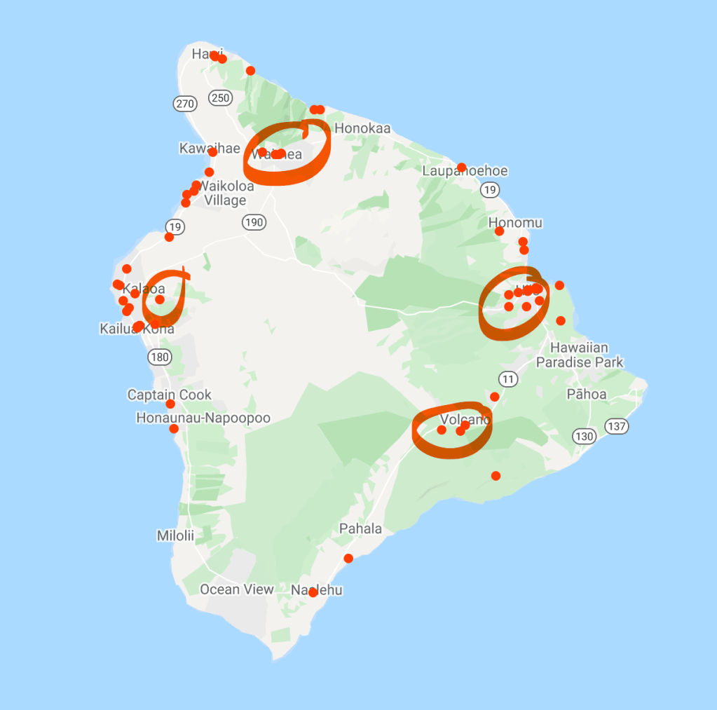 Our inbound flight arrived on the big island of Hawai’i and our outbound flight left from Honolulu on Oahu. Decision made: We would explore these two islands. No beach resorts for us; instead, we booked AirBnBs in four places around the big island and one spot on Oahu and drove around both islands to see all we could.