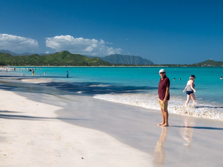 On our final day, we tried to visit the Ko Olina lagoons, which were very close to the AirBnB where we were staying and were recommended by our host. These are four human-made lagoons built for a resort area, but available for the public to use. We couldn’t get a parking spot at any of them in the morning, so made the drive back through the tunneled highway to Kailua Beach Park and spent a pleasant few hours swimming and reading there.