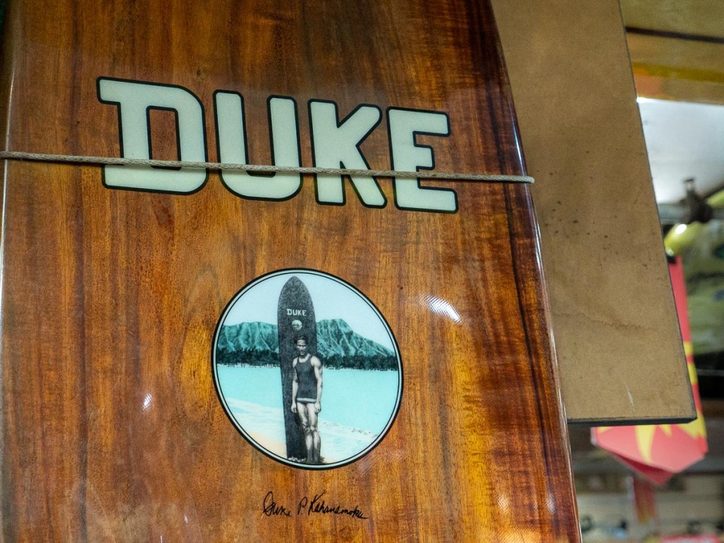 We stopped in Hale’iwa to check out the historic surfboards in what turned out to be a surf shop rather than a museum. The ceiling of the Surf & Sea was lined with boards representing what is probably a complete history of the sport and staff-member Tom was generous with his time as he explained some of the treasures there.