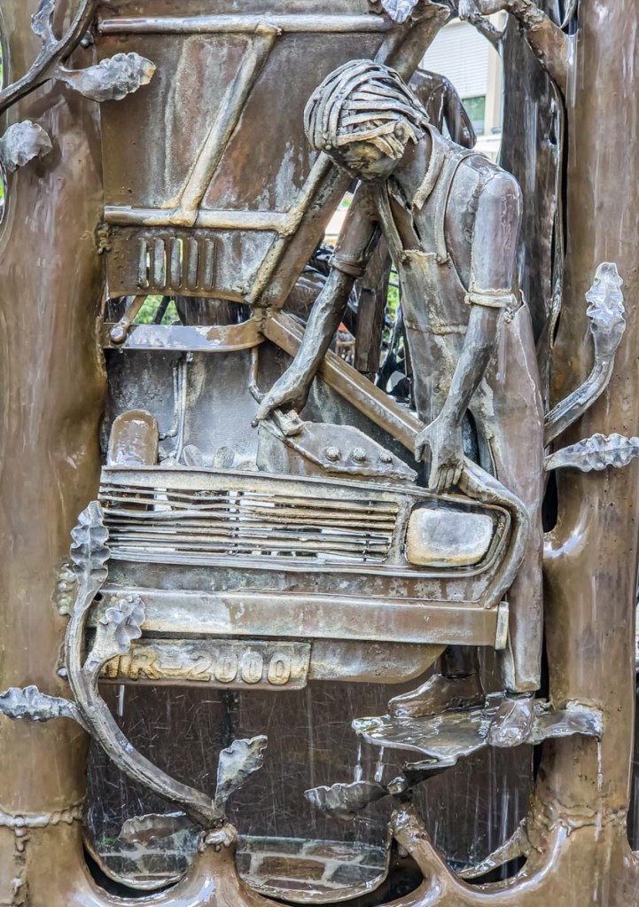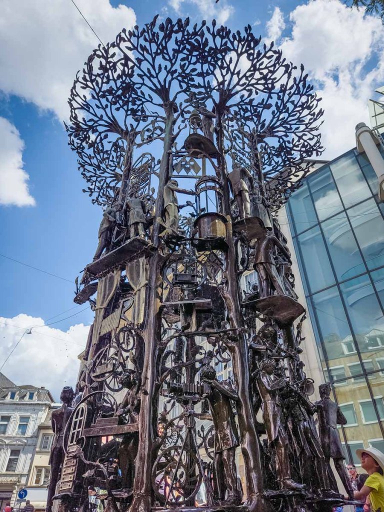 On our way into the old town, we came across the sculpture Handwerkerbrunnen (Fountain of Artisans) created in 1984 by the blacksmith Klaus Apel. It was a striking piece in the center of a pedestrian walkway, but the level of detail invited closer scrutiny. Thirty-six different trades are represented, nestled into the trunk and branches of the tree-like structure.