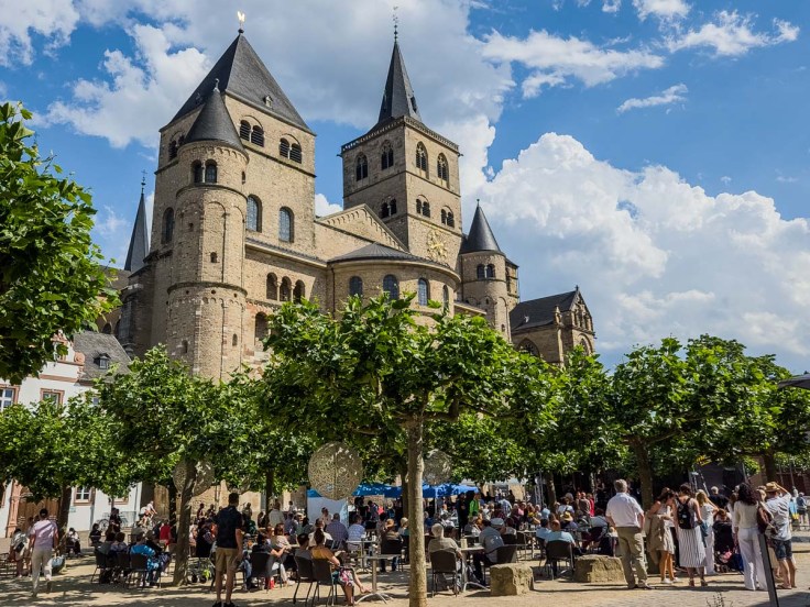 On we wandered, drawn toward what sounded like live music. But first, we were overwhelmed by the massive structure that is Dom Trier, or the Trier Cathedral, the oldest church in Germany. Begun in the 4th century, it has been partially destroyed, rebuilt, added onto, and who knows what else so that there are multiple styles and buildings joined together.