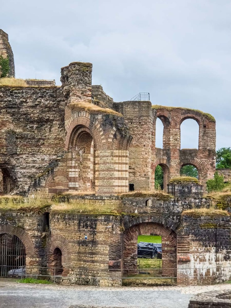 Considered to be Germany’s oldest city, Trier is full of Roman ruins. There are two enormous thermal bath locations, both active archeological sites. The Barbara Baths have a visitor walkway straddling the site with many interpretive signs explaining how the thermal site worked and how it functioned within society. Many of the excavated sections have protective roof coverings, making it a little challenging to see. The Imperial Baths are more open and impressive to the casual viewer. Visitors can walk around the ruins though we chose just to take a quick peek from outside the fence. Along the river, you can see a 2nd century roman bridge, and one of the first land-based cranes used to load and unload ships dating from the early 1400s. A huge city gate, Porta Nigra (Black Gate) stands at one edge of the old town. In roman times, it was one of four city gates forming a rough triangle around Trier.