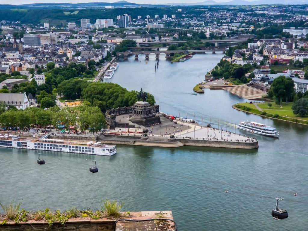 Koblenz sits at the confluence of the Rhine and Moselle rivers at the top of the Rhine Gorge, the section of the Rhine Valley that we had wanted to visit. We stayed partway down the river for four nights, but our hotel was booked up after that, so we managed to reserve an extra three nights in Koblenz to make sure we had enough time to see the valley and its castles.