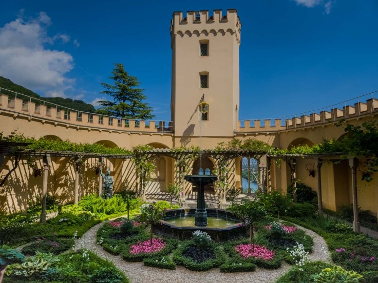 This castle has indoor sections that you can view, though visits are carefully monitored and you must put on gargantuan over-the-shoe slippers before entering the various rooms. Outside there are pretty gardens and lovely views.
