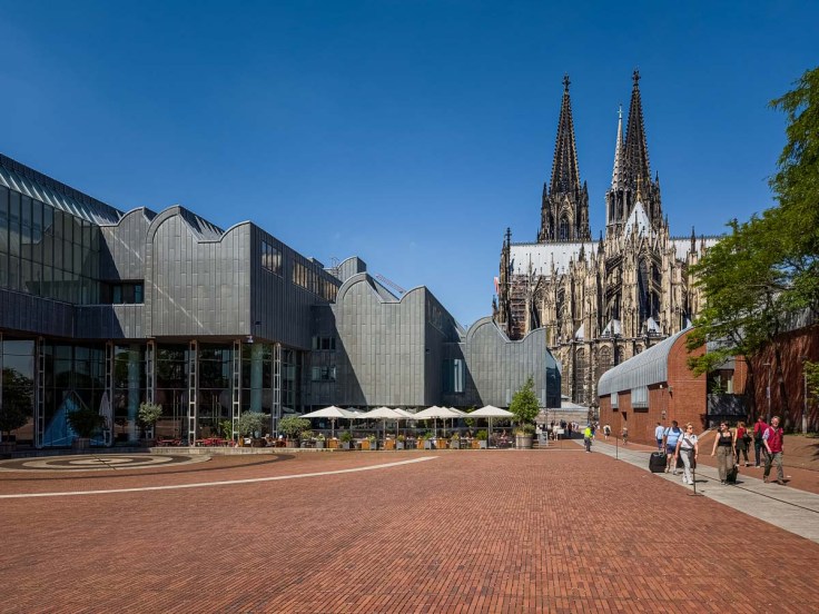 The large brick plaza in front of the Ludwig Museum was interesting. Depending on the day, you will find signs dotted around the edges and people wearing hi-vis vests in a few spots. If you wander onto the bricks without noticing the signs, you get yelled at (personal experience here). The Köln Philharmonic practices below that space and rolling suitcases or scooters, or even people walking, apparently, create a disturbance. So, every time the orchestra uses the space, out come the signs and the guards. I wonder why they don’t use a rope to block off the space rather than easily missed signs and yelling (in a tourist area where many don’t understand what’s being yelled).