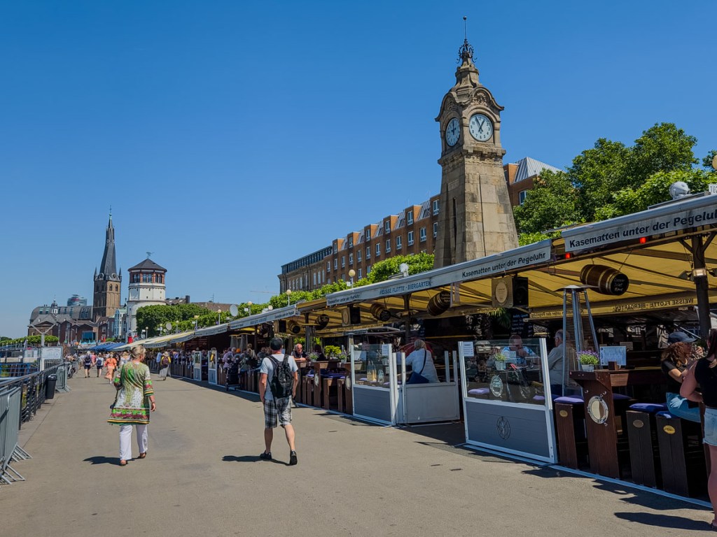 Leaving the ritzy Kö behind, we walked into the old town along Bolkerstraße, sometimes referred to as the longest bar in the world since one bar is connected to the next and the seating seems to all blend together. This is a good place to stop and try Altbier, Düsseldorf’s traditional fresh beer on tap. Ken enjoyed it, but in an Altbier/Kolsch (from Cologne) shootout, Kolsch takes the win for him.