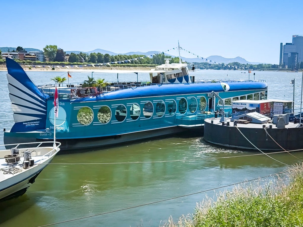 Though Bonn is geographically positioned along the Rhine River, connections to the river don’t seem to be as strong as in other cities. Rather than developing from the river and heading inland, riverside activity seems to be lacking. There are a few cafes, some tour boats, and an old church, but not a lot of life, at least when we visited. This is just an impression, of course, and may not be the local experience at all.