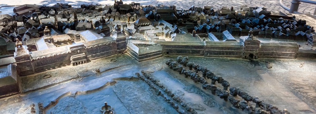 A bronze model shows the length of the palace