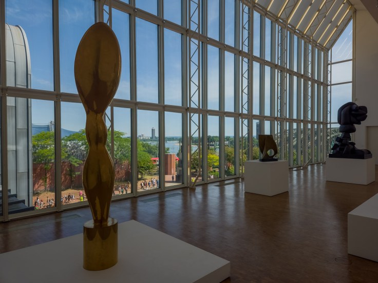 A few important museums are close to the cathedral. One is in the cathedral itself and contains a collection of paintings, sculptures, and jewelry. The Roman-Germanic Museum tells the story of the city’s origins and development, with artifacts going back 1,000 years. Some of these are positioned around the outside of the museum for all to see. We visited the Ludwig Museum, wandering for several hours among the paintings and sculptures with several by Picasso and a terrific temporary exhibit on the works of Japanese American sculpture Isamu Noguchi. A bonus is the view out of the museum’s window.