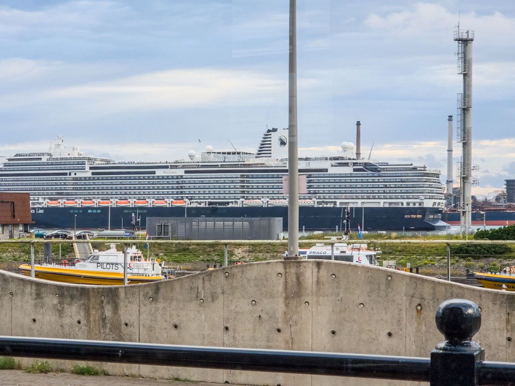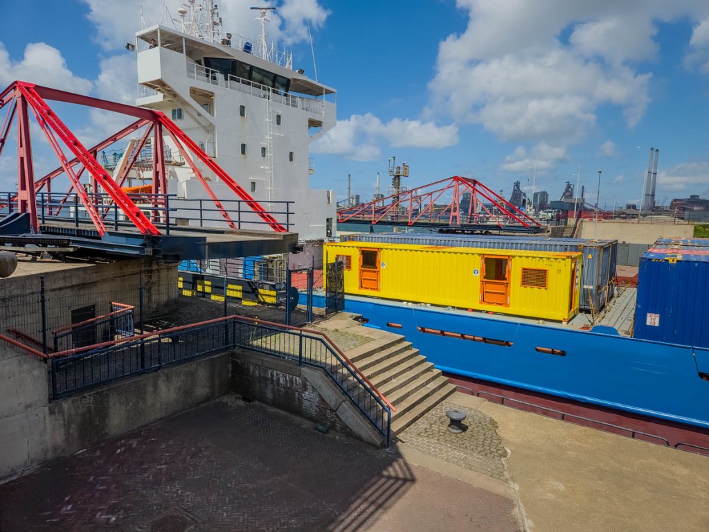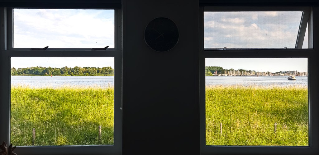 The mouth of the North Sea Canal is right outside the window, viewable from both the interior lounge and the exterior front porch. There are multiple locks on the canal, including the world’s largest sea canal, which just opened in January 2022. Just outside the door, you can begin a two-kilometer walk to cross and view all the locks and the SHIP museum, which explains the construction of the sea lock (it is only open four days a week and we missed out). Boats and ships of all sizes come through the different locks and provide never-ending entertainment. The full trip across all the locks is temporarily closed to cars but open for bikes and pedestrians.