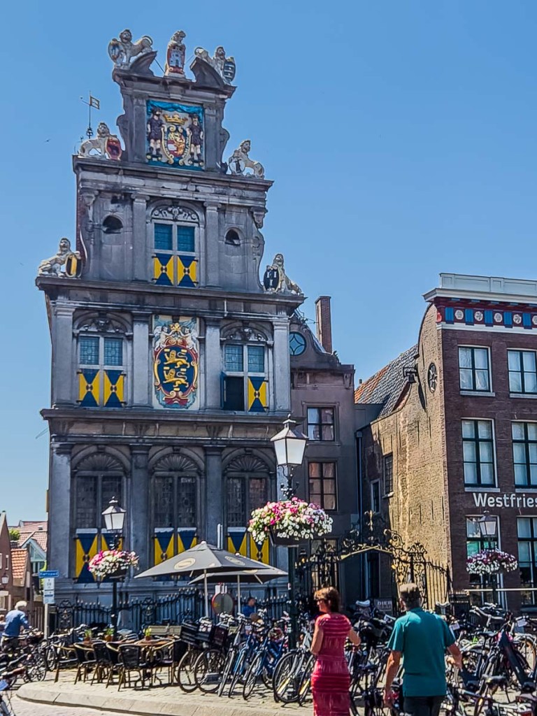 Hoorn (recommended by our new friend, Frank), was another interesting town to visit. We parked in one of the free parking areas near a park and walked the short way into town. Our first view was of the Hoofdtoren, a 16th-century tower, which appeared to be guarding a number of antique boats floating in the harbour below.