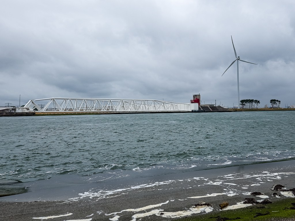 We were lucky enough to have a weekend day to do a road trip with our son, Kyle. He booked a car through a car-share network and drove us down to an area that isn’t easily reachable by transit known as The Hook of Holland (Hoek van Holland), about a 40-minute drive south of The Hague. Our main goal was to visit the Maeslant Storm Surge Barrier, which had fascinated us since viewing a documentary where it was featured. We had booked a tour (which would allow us to get up close and personal to it) and had enough time beforehand to take a walk on the long pier that juts out into the ocean, De Pier Hoek van Holland.