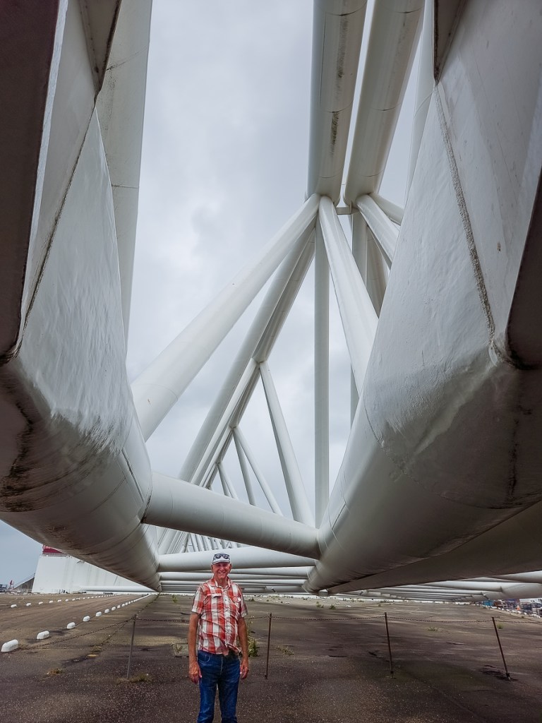 The Keringhuis Water Information Center was well set up and informative, or at least it was once our English-speaking tour guide walked us through it and pushed all the buttons to activate the demonstrations. All written content is in Dutch and our guide’s English narration provided much-needed context. We were the only people who had booked a tour and our guide was excellent, answering our many questions as he explained the role of the barrier in the area’s flood mitigation and took us outside to allow us to walk under and stand beside the behemoth arms. Flood season is predictable and when we visited the arms were out of the water and undergoing maintenance. They are returned to service in September for a test closure, and then they stand ready to protect South Holland for the high-risk months.