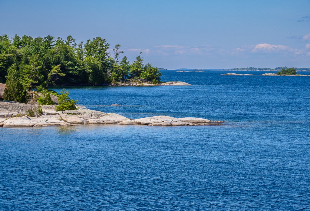 We expected to be delighted by the Georgian Bay area on Lake Huron, and we were. We moved around it slowly, staying one night in several places, including a craft brewery, a sugar shack (maple syrup operation), and a peaceful spiritual garden (all Harvest Host locations), as well as one night at Killbear Provincial Park. We even hopped on a “three-hour cruise” in Parry Sound, which we would highly recommend as a great way to get out into some of the 30,000 islands that are in this very ocean-like environment. Georgian Bay truly left us awed.