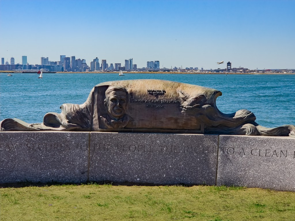 We completed a short house sit in metro Boston, in Winthrop. We were able to take the dogs to the beach for their walks each day, and visit Deer Island on our bikes. In the 1980s, the Boston Harbor was known as “the filthiest harbour in America.” A federal lawsuit about the state of the harbour resulted in a massive cleanup project and the construction of a water treatment facility on Deer Island. The facility is encircled by a paved riding and walking path dotted with interpretive signs describing the problem, the project, the people behind it, and its results. It also offers wonderful views of the Boston Harbor and of planes flying in and out of the Logan International Airport.