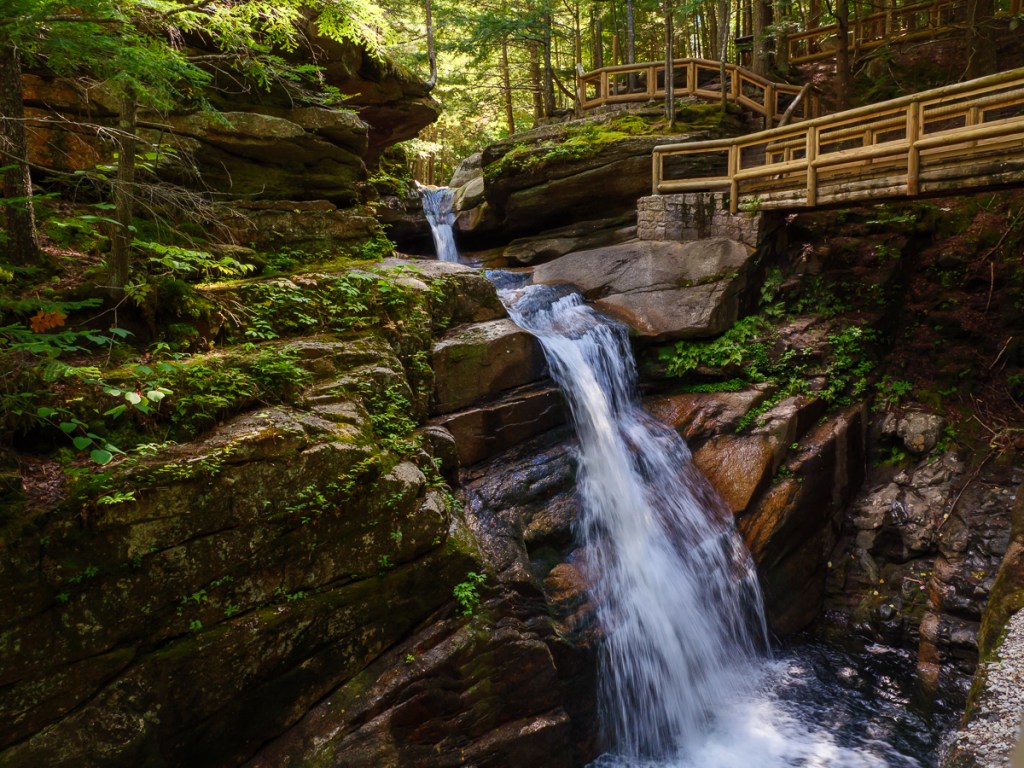 From North Conway, one big draw for us was a drive west along the Kancamagus Scenic Byway, a 35-mile path through the White Mountain National Forest. The drive, dotted with waterfall viewing stops, is supposed to be one of the best drives for fall foliage viewing but we were a little too early. Still very scenic, but only a few turning leaves teased us with visions of what would be (and what we wouldn’t see).