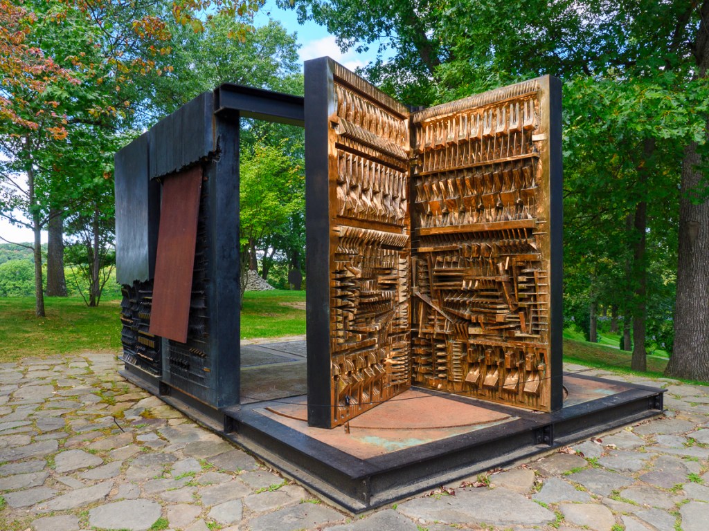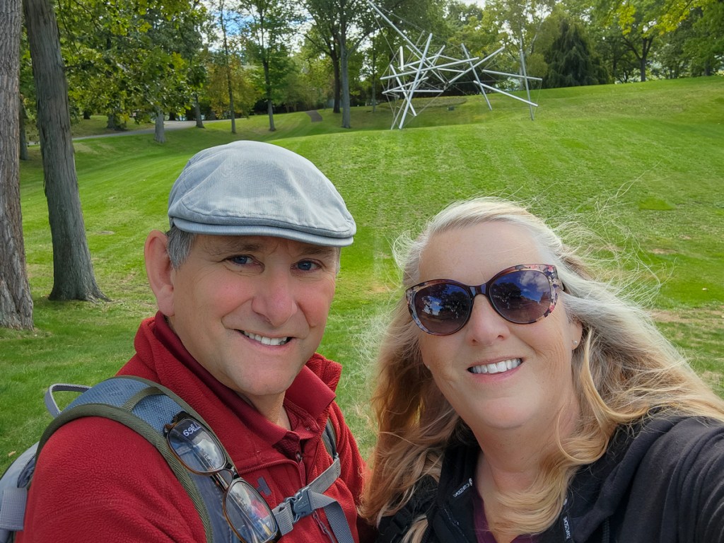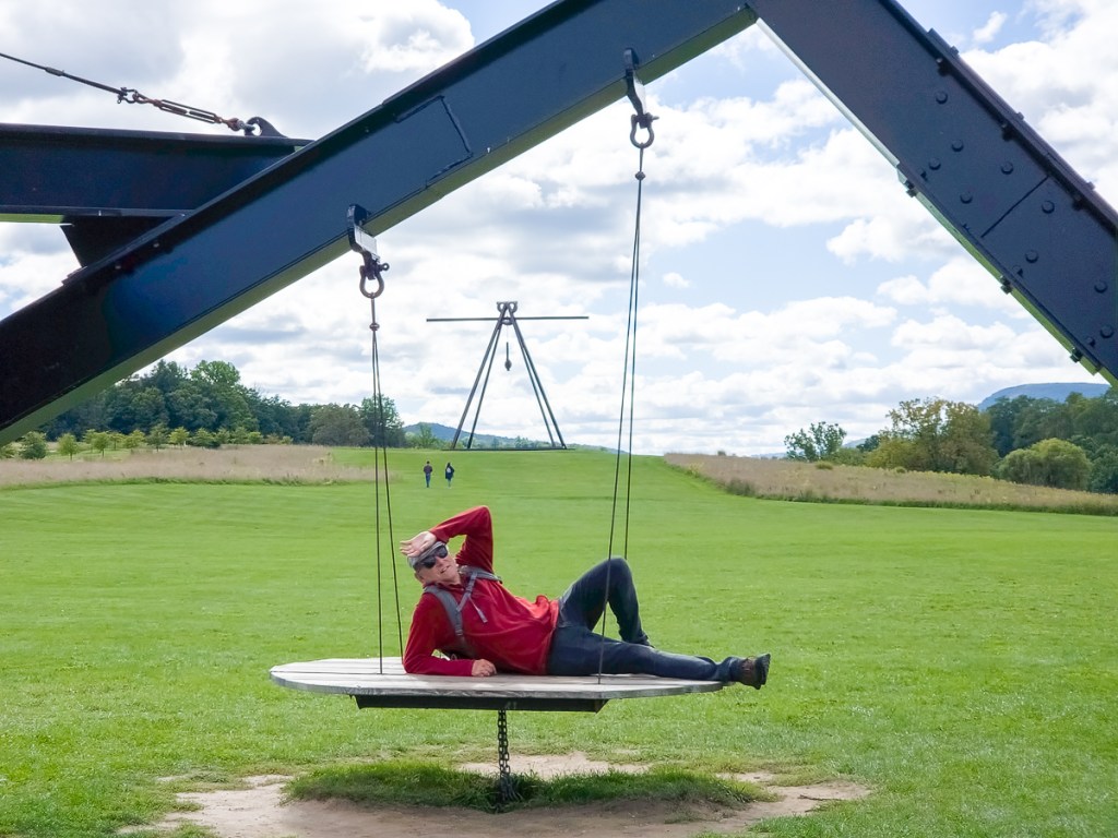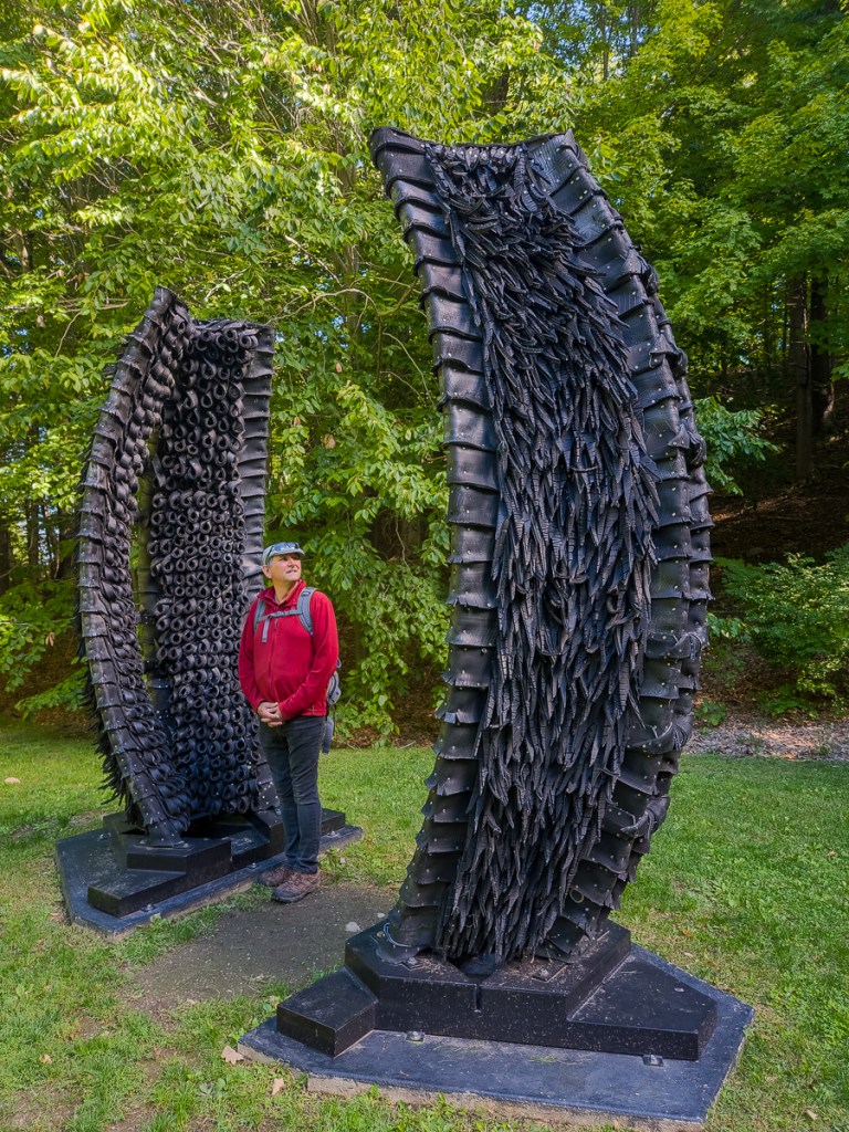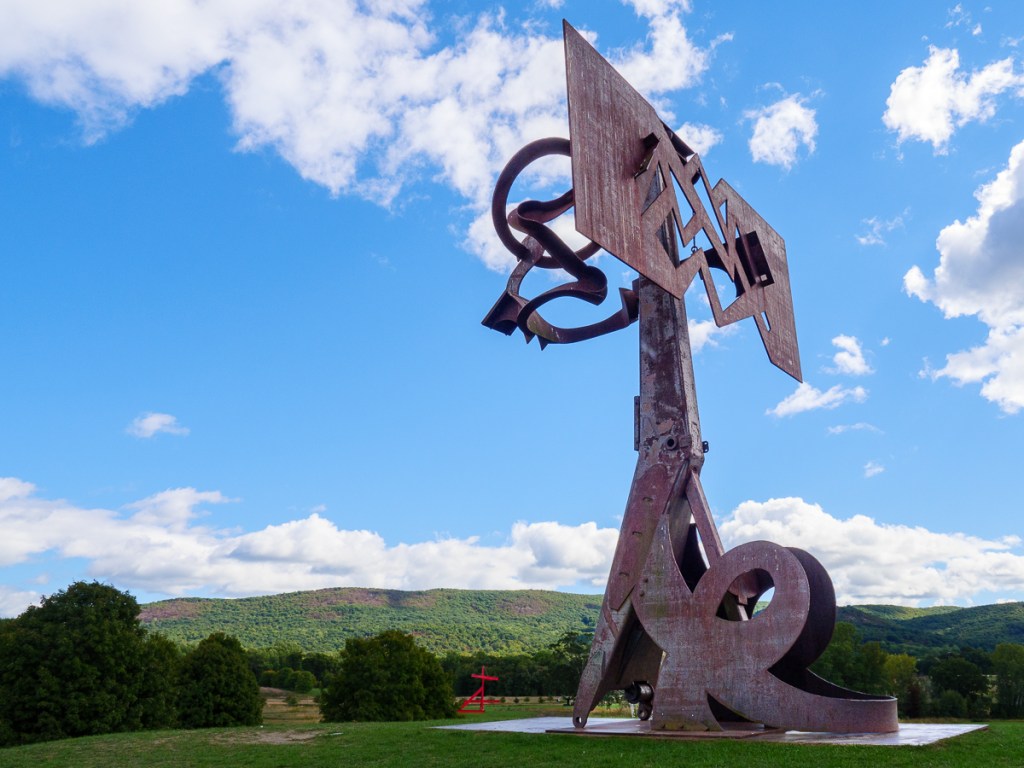 Our New Jersey housesit homeowner had suggested stopping at Storm King Art Center if outdoor sculpture interested us, which it most definitely did. Storm King, begun in 1960, is a 500-acre open-air sculpture park in New York’s beautiful Hudson valley. The land itself has been sculpted to include fields, marshes, ponds, and hillsides with often gigantic sculptures thoughtfully placed throughout the landscapes. You can ride (rental bikes only), walk, or take a tram tour through the pathways, and come across surprisingly beautiful vistas and art with every turn and on every overlook. We spent several hours wandering around and finally had to accept that we couldn’t possibly see everything.