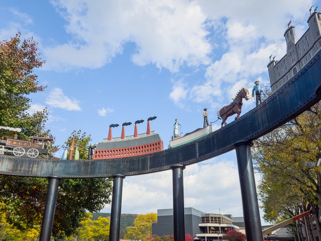 We had a few days between the end of our New Jersey housesit and an appointment for Artie in Pennsylvania, so we decided to squeeze in a few more fun activities en route. The first meant that we drove about three hours north rather than west to Corning, New York. Our target here was the Corning Museum of Glass, which we had heard about while watching the Netflix show, Blown Away. The museum was well worth the drive there and offered very good value for the entry fee. It’s a beautiful museum with plenty to see for everyone, including a well-curated history of glass area that we only had time for a quick gander. We learned a lot about important scientific advancements in glass over the years, watched glass being sculpted and blown in a hot shop, and marvelled at gorgeous glass sculptures.