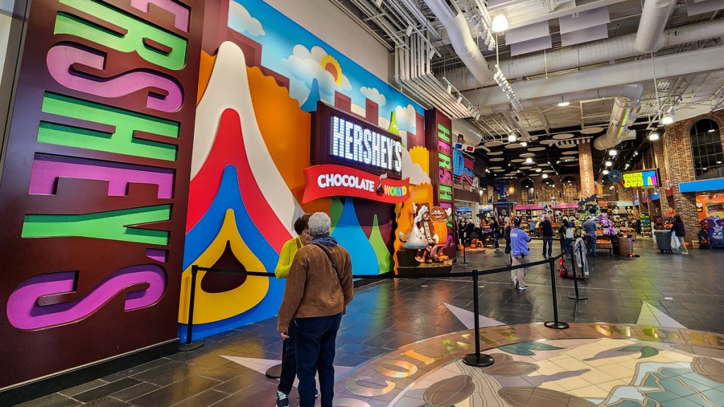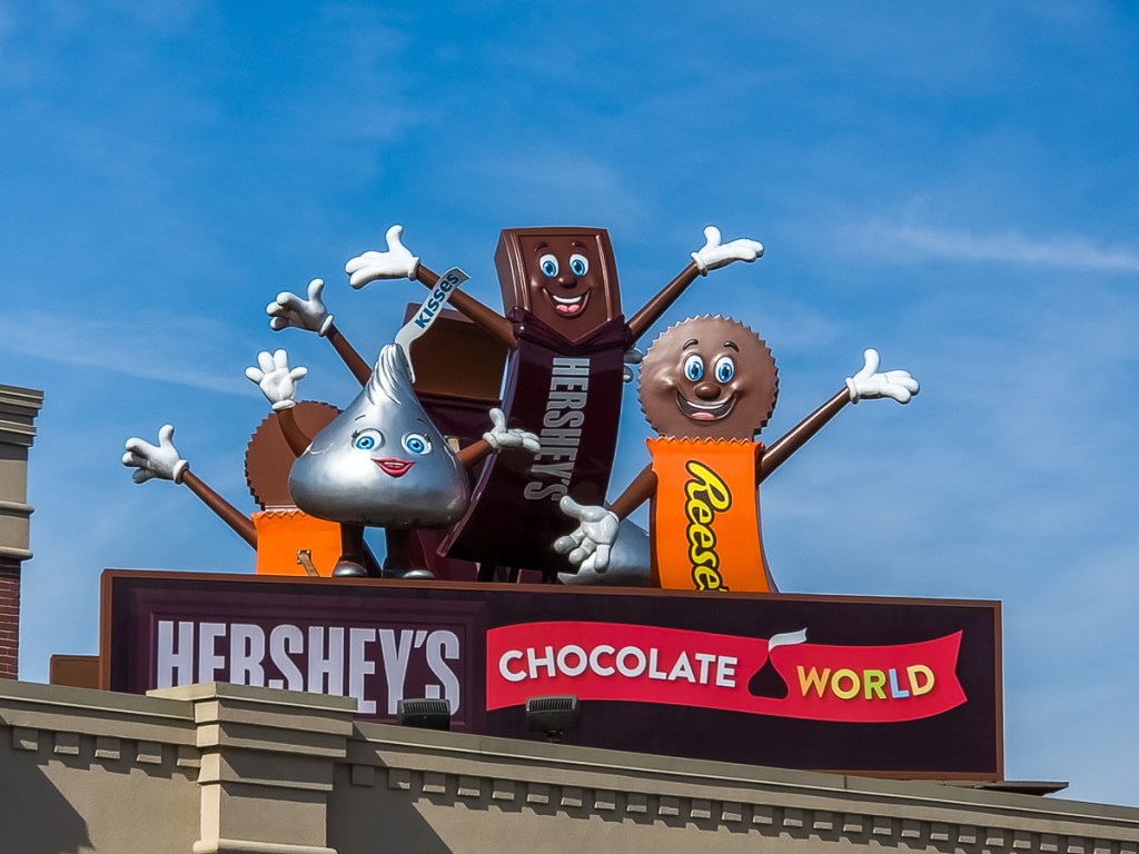 I have had a long-standing wish to go to Hershey when I learned of its existence many decades ago. It may not represent the best in chocolate, but it was a town that grew from the business of chocolate and whose name drips with indulgence. We weren’t interested in the amusement park (which was good because it didn’t appear to be open when we were there), but a free visit to Hershey World sounded just right. We took the ride-on tour, got our wee chocolate sample, and wandered through what seemed like acres of chocolate packages and branded goods for purchase. We then did a short walking tour and learned about the history of Hershey while completing an Adventure Lab.
