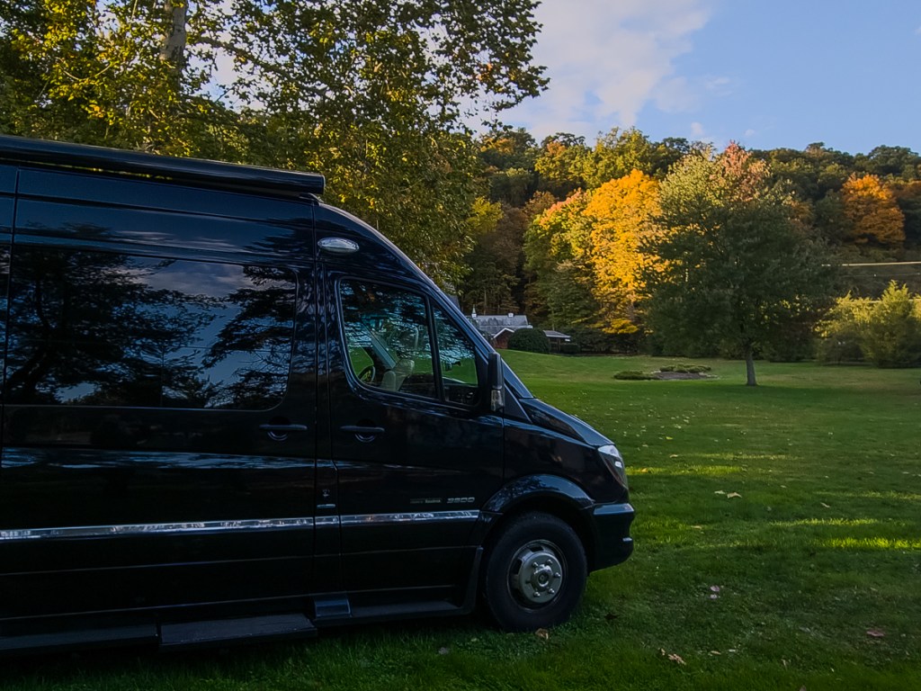 Until this point in our road trip, we had been limping along without an inverter and with batteries that didn’t seem to be holding a charge (though we had had them tested earlier in the trip in Maine), making it challenging to boondock or camp anywhere without electrical hookup. Only a few places have experience with Artie’s breed (RoadTrek), and Beaver Motors RV in Beaver Springs, Pennsylvania, is often cited as one of the best. A month or so earlier we had made an appointment for an inverter replacement for when we would be in the area. Finally, Artie was getting the TLC that he deserved. We ended up spending a night in the Beaver Motors parking lot (common for RoadTrekers seeking service), and made a mad 6-hour return dash to Jersey City to pick up a new set of four batteries on warranty (turns out, they were not good, despite the clean bill of health they’d been given in Maine) and returned to Beaver Springs for installation the following afternoon. Artie left there full of vim and vigour and kept his energy up for the rest of the trip.