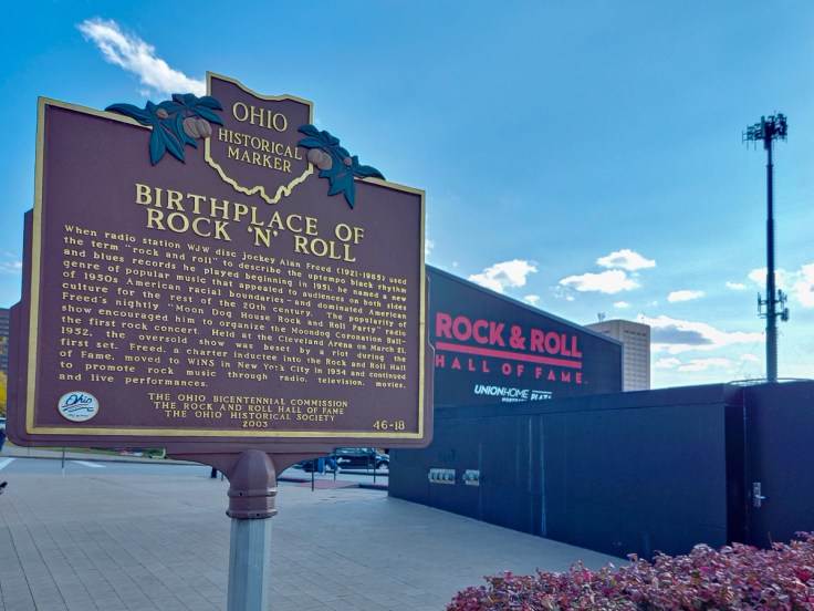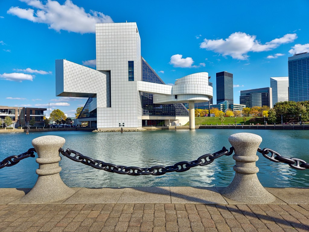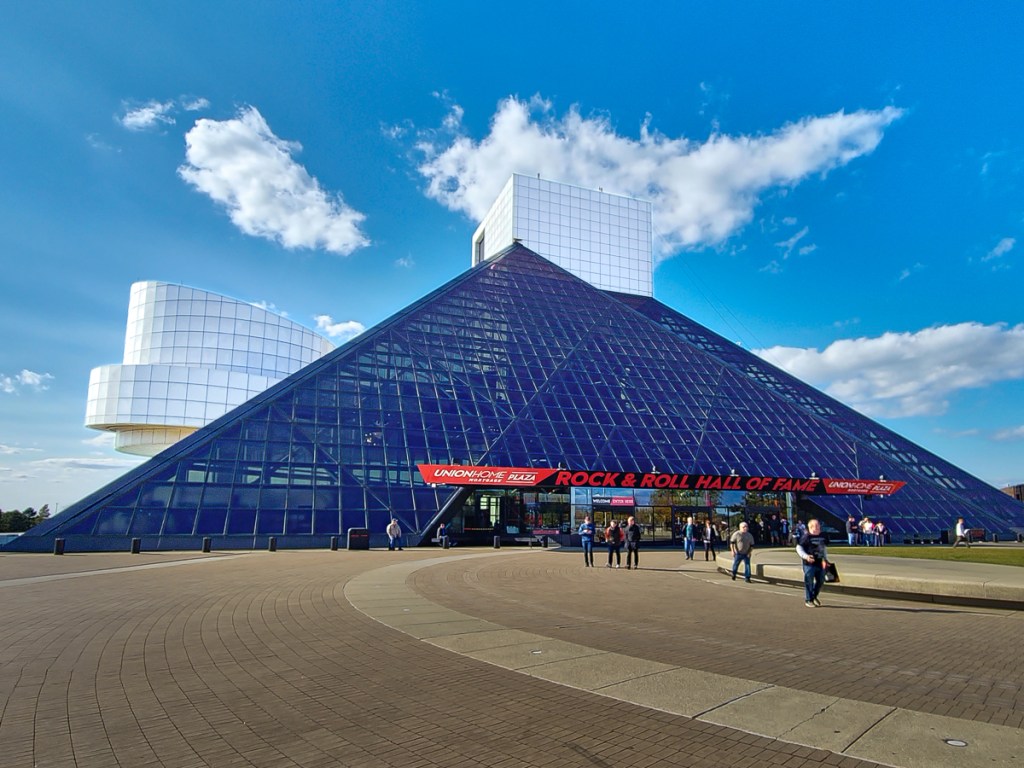 We stopped for a couple of hours in Cleveland, just to see the Rock & Roll Hall of Fame and a little of the downtown area. It would have been fun to go through the museum, but we settled for a quick step inside the doors and a walk around the outside of this beautiful building.