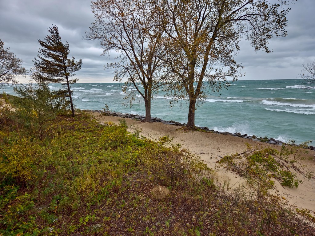 On our way past the southern tip of Lake Michigan, we stopped at the Indiana Dunes Visitor Center and then took the scenic drive along the dunes and lake of the national park. It was so windy and cold, we only hopped out for a photo or two, and then just kept moving.